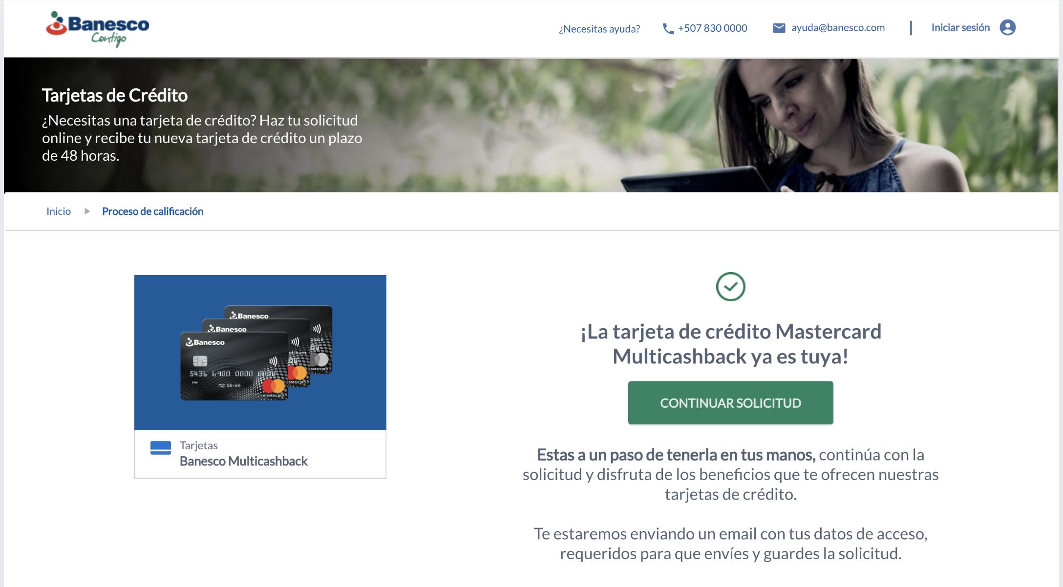 Online credit card application channel for Banesco Panama